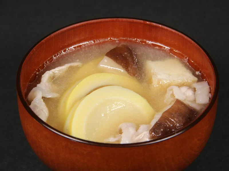 この地で春の風物詩となったのが「孟宗汁」です。筍に厚揚げ・椎茸・豚肉などを加え、味噌と酒粕で仕立てた滋味深い汁物で、酒粕のやさしい甘みが筍の風味を引き立てます。直木賞作家・藤沢周平が「毎年五月になると思い出す季節の味」と語ったこの一椀には、北国の遅い春をようやく迎えた人々の安堵と喜びが、静かに染み込んでいるようです。