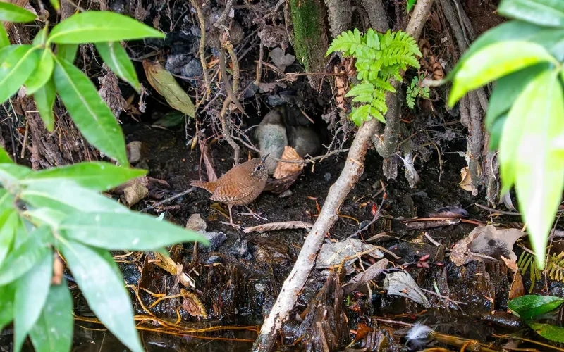 ミソサザイは、ヨーロッパからアジアにかけて広く分布する鳥で、日本では九州以北の山地で繁殖しています。伊豆諸島にはモスケミソサザイ、屋久島や種子島にはオガワミソサザイといった亜種もいて、場所によって少しずつ違いがあるんですね。なお、大東諸島の南大東島では、1938年にダイトウミソサザイという亜種が採集されていますが、その後は見つかっておらず、絶滅したと考えられています。