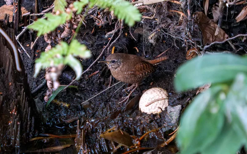 ミソサザイの横に写っている白い丸いもの、これ、ゴルフボールなんです。なぜこんなところにボールがあるのかはさておき、この写真を見たとき、「ああ、ゴルフボールよりちょっと大きいくらいなのか」と、妙に納得してしまいました。ゴルフボールの直径は42.67ミリですから、こうして見ると、この鳥がどれだけ小さいか、ぐっと実感できるのではないでしょうか。