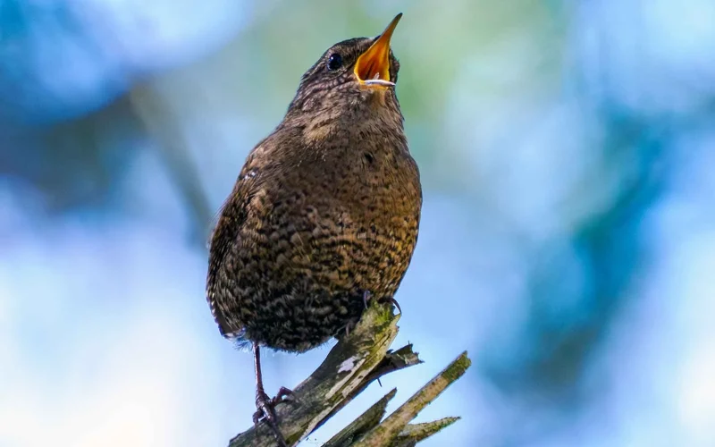 ところがこの鳥、体はこんなに小さいのに、さえずる声は驚くほど大きい。しかも、かなり長い時間鳴き続けます。「ピピピチョリチョリルルルル」と、ビブラートをこれでもかと効かせた声を、何度も何度も繰り返す。聞いているこちらが、「いったいどこで息を吸っているんだろう」と、つい心配になってしまうくらいです。実は鳥というのは、息を吸うときも吐くときも音が出せるので、その点は問題ないのですが、それにしても、よくまあ疲れないものだなと思います。