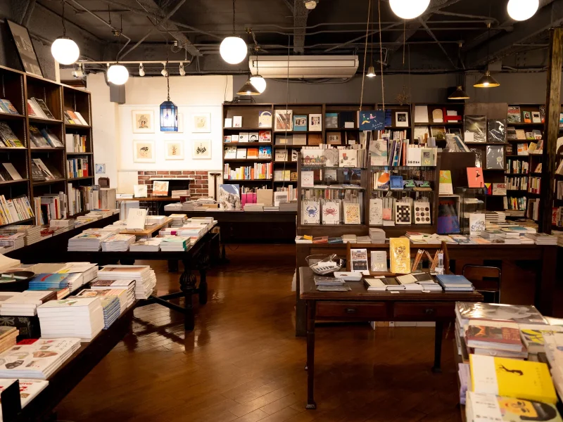 スタッフの方に挨拶し、ことわってからお店の写真を少しだけ撮らせてもらって、「暦生活展」の会場を見てから本を選ぶことに。ある程度コーナーごとに分類はされているものの、普通の本屋のように出版社別に緻密に並んでいるわけではなく、たまたま目についた本との「出合い」を楽しめるようになっていました。