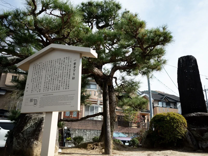 お腹が満たされた後は、かの剣豪・宮本武蔵が吉岡一門と決闘した場所だと言われる「一乗寺下り松」を見に行くことに。漫画『バガボンド(講談社)』を読んだことのある人なら、この高揚感を理解していただけると思います。そう、漫画にも出てきたあの松の木は、ここ一乗寺にあるのです。期待に胸を膨らませ、傾斜のゆるい坂道を登っていくと、やや、ありました…!立て札によると、どうやらここで、武蔵と吉岡一門が決闘したのだそうです。『バガボンド』ファンとしては機会があればぜひ行きたいと常々思っていたのですが、今回のそぞろ旅でようやく念願が叶いました。