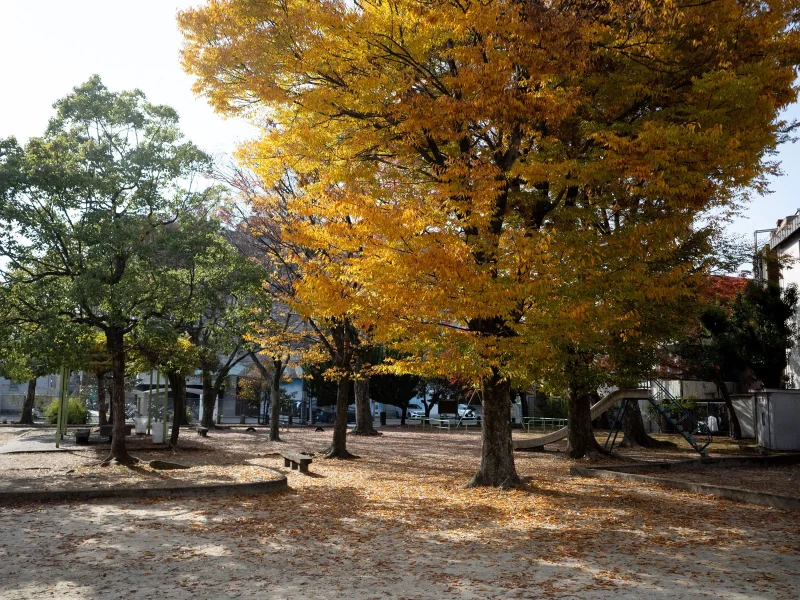 空は高く、初冬のひんやりとした空気が心地よい。歩くのが気持ちいい。そのうち雰囲気のいい公園を見つけて、少しそこで時間を潰すことにしました。誰もいない午前中の公園は開放感があり、木々はそれぞれ紅葉、または黄葉し、やわらかな日差しを受けてキラキラと輝いていました。公園にはなにか心を穏やかにさせる効能のようなものがある気がします。木々の葉が作る木漏れ日ややわらかい風、どこか懐かしい匂い…。