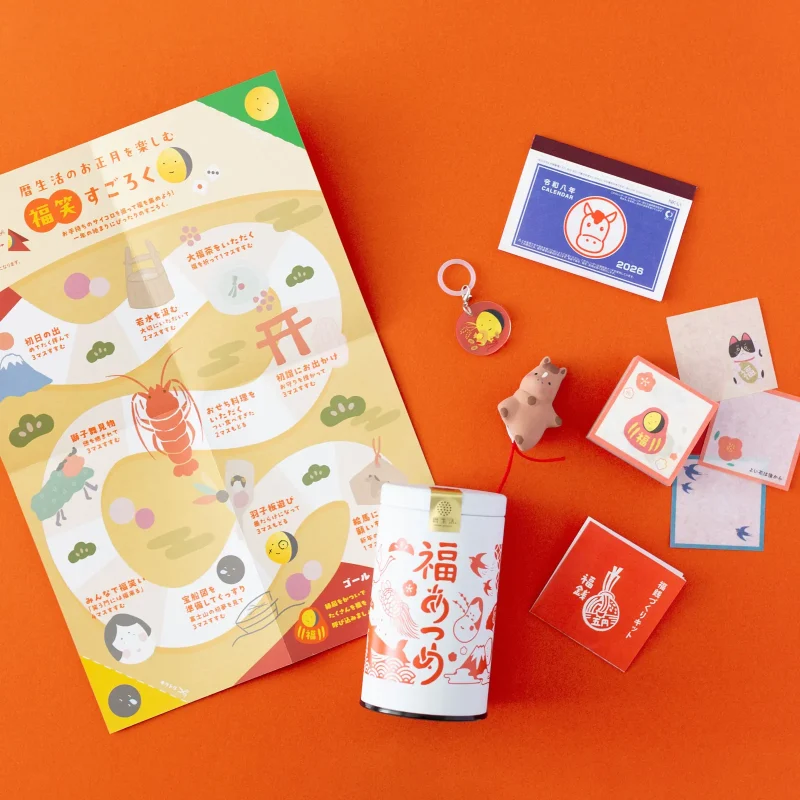 今年も1年間、ありがとうございました。感謝の気持ちを込めて、今年も「暦生活の福あつめ」を作りました。縁起の良い5つの商品をオリジナルデザインの缶に詰め合わせました。「良い年へ」の願いを込めて、小さな幸せをお届けします。