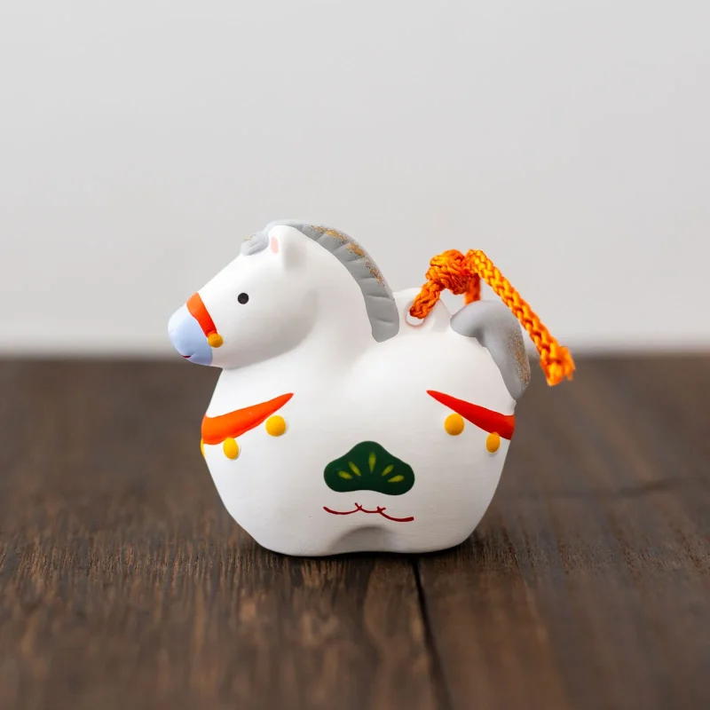 2026年の干支「午」をかたどった、ほのぼのとした表情が可愛らしい陶器製の土鈴(どれい)。土鈴は、穏やかな音色で心を癒し、魔除けや幸運を呼ぶ縁起物。飾るだけで福を招くとされ、年始や祝い事にぴったりの伝統的なお守りとして親しまれています。