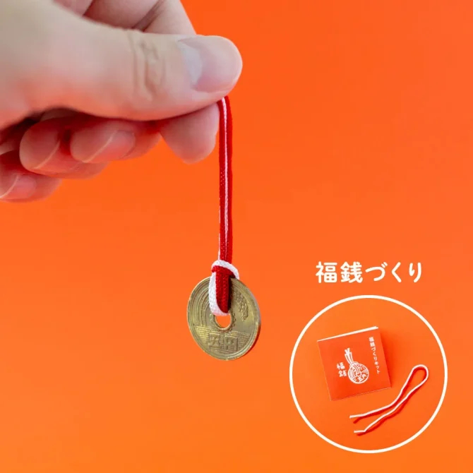 福銭は、清められた五円玉に縁起のいい紅白の紐を通し結んだもの。福銭の五円玉を使うと福が返ってくるとも。 綺麗に洗い清めた五円玉を福銭にしてみませんか。