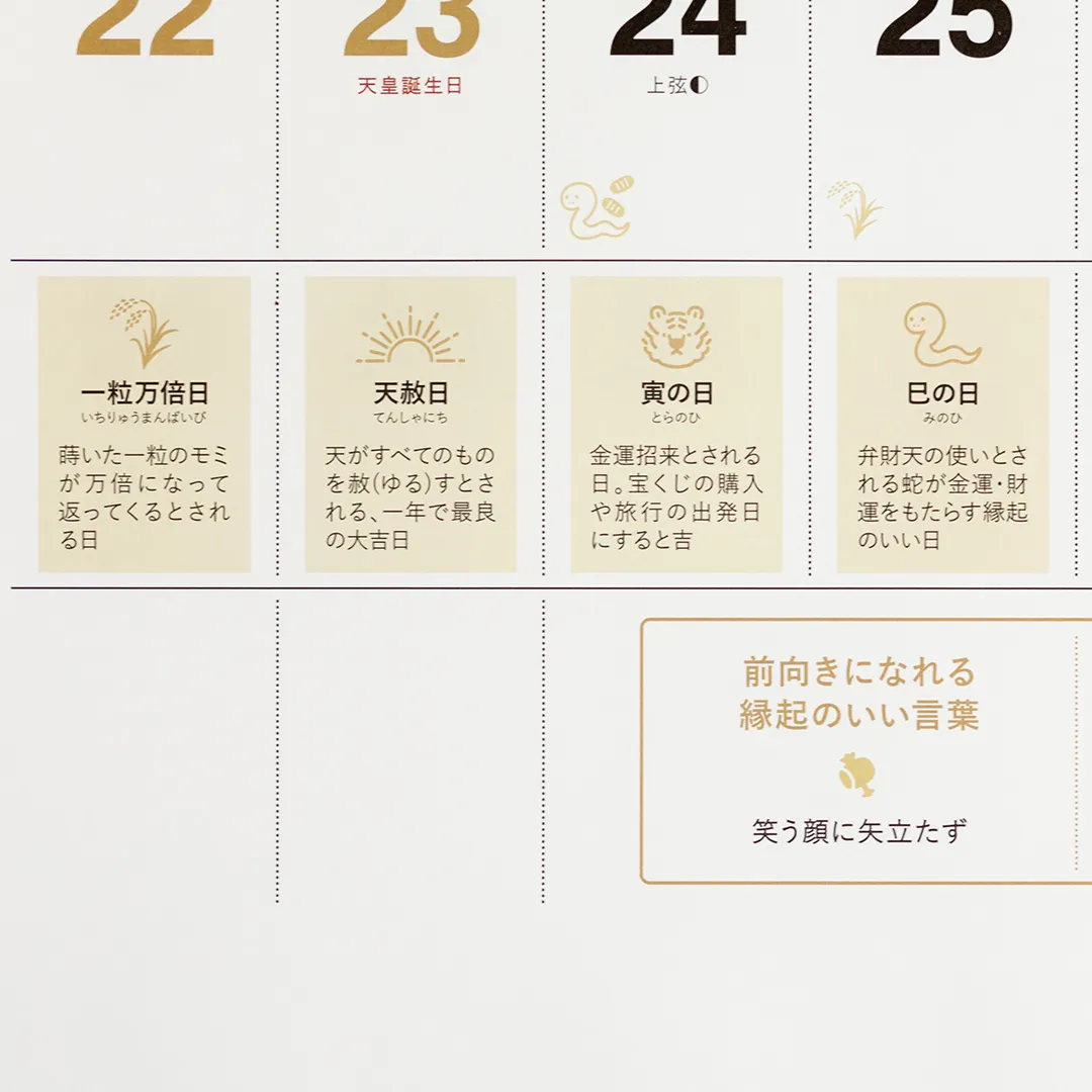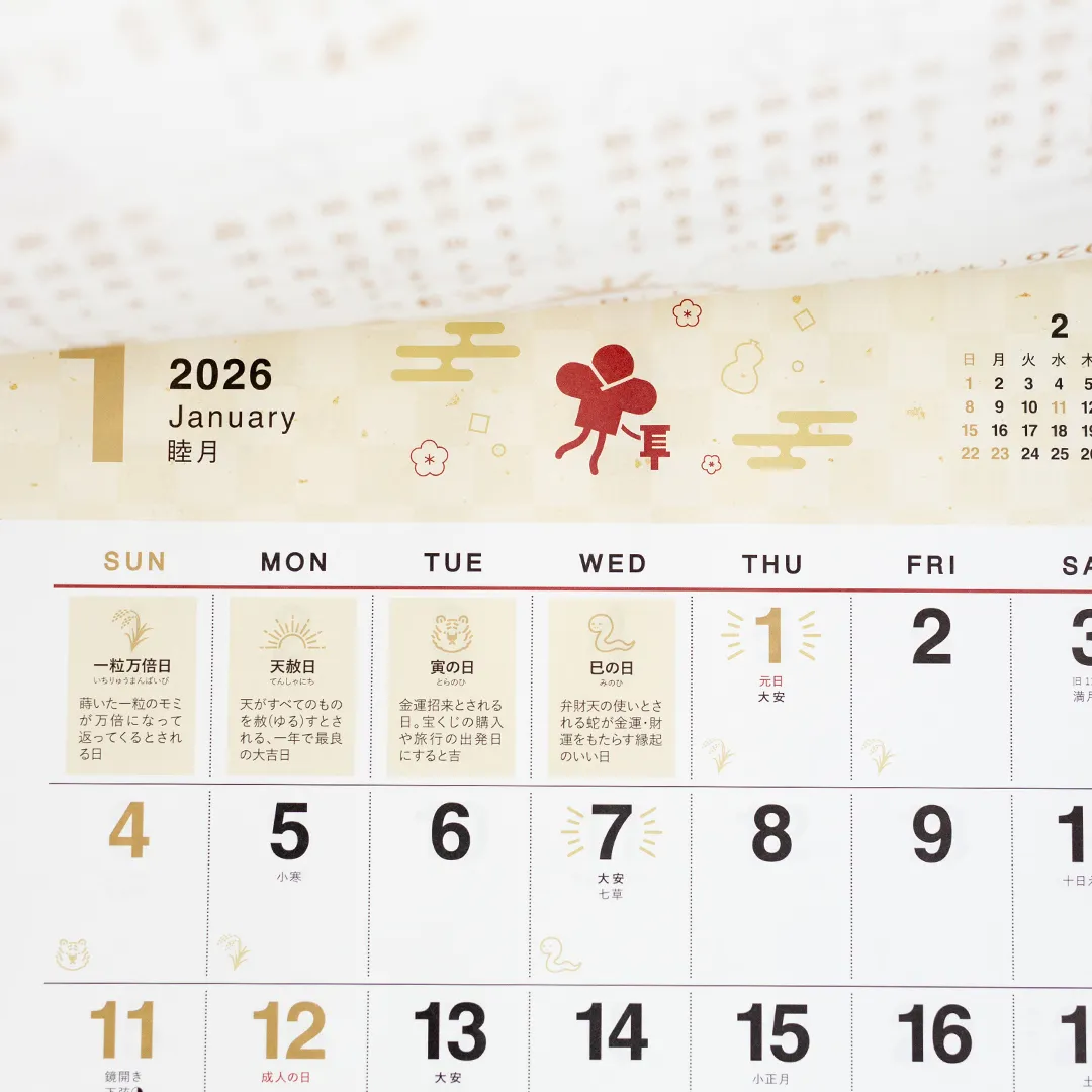 『縁起のいい日 カレンダー』とともに、前向きな気持ちで新年をスタートさせてみませんか。