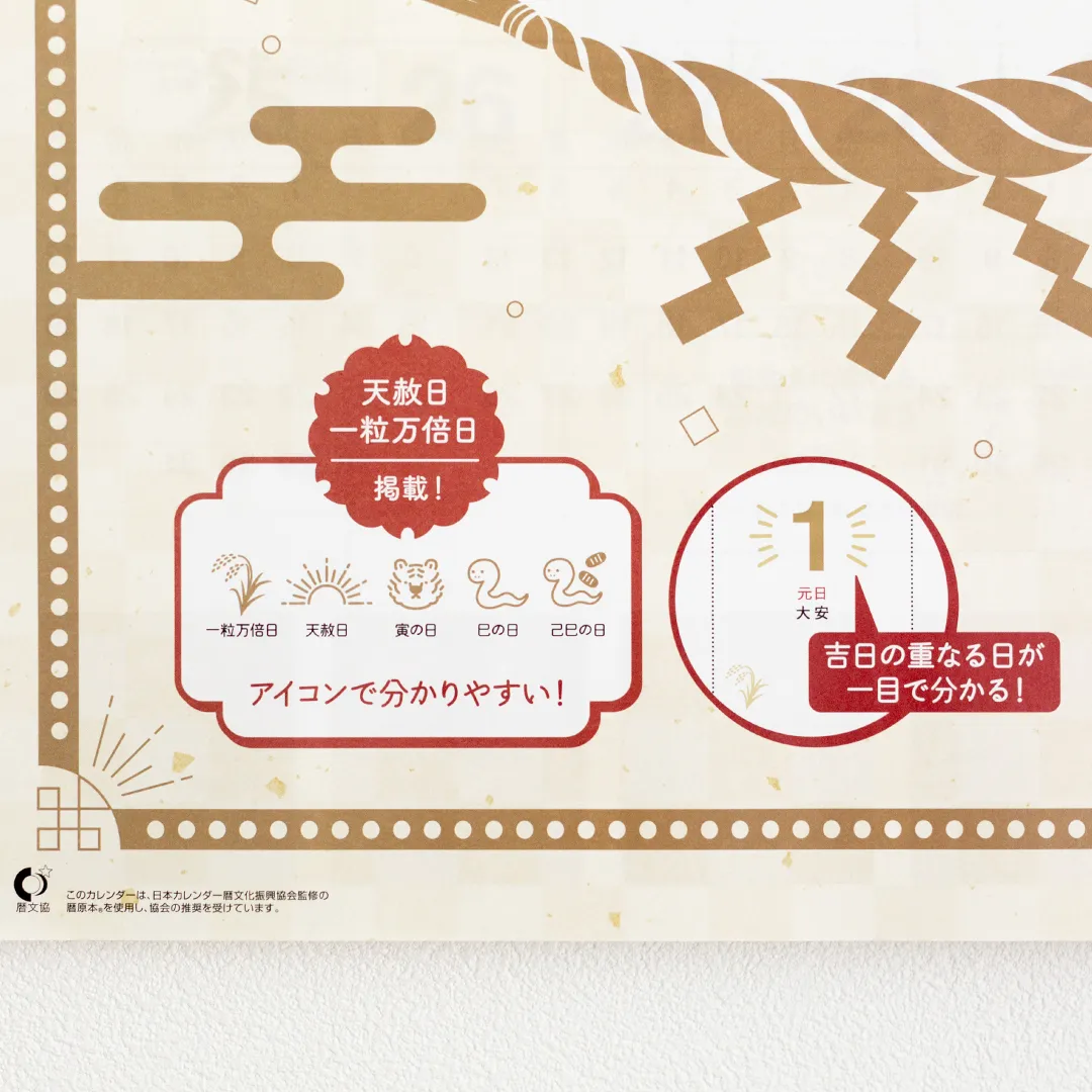 【2026年】 縁起のいい日 カレンダー 壁掛け(大) 一粒万倍日記載