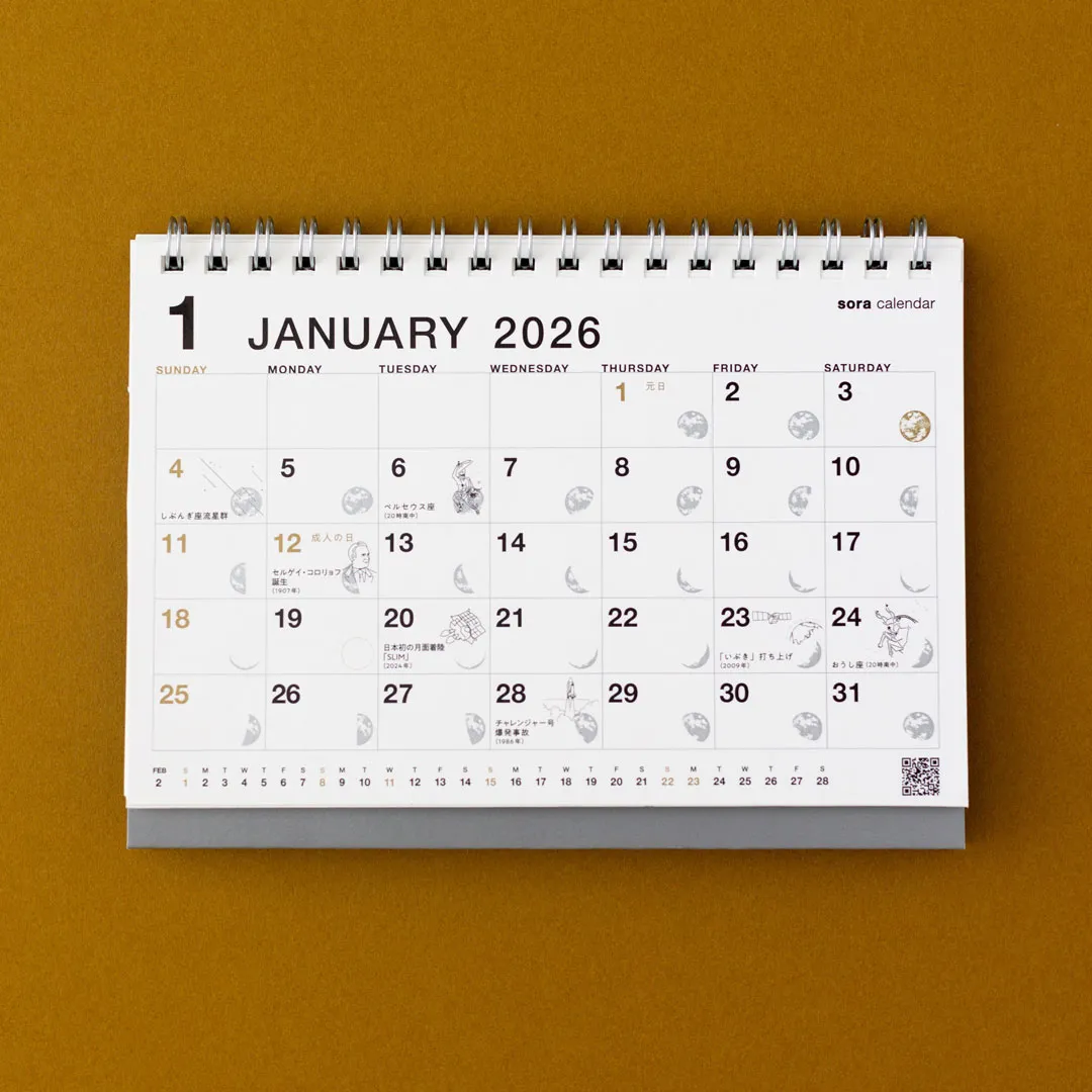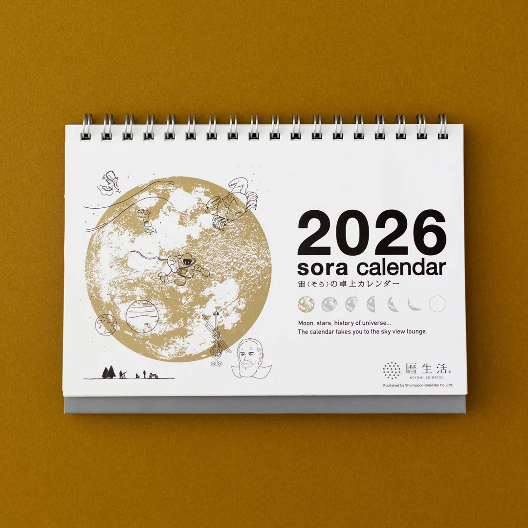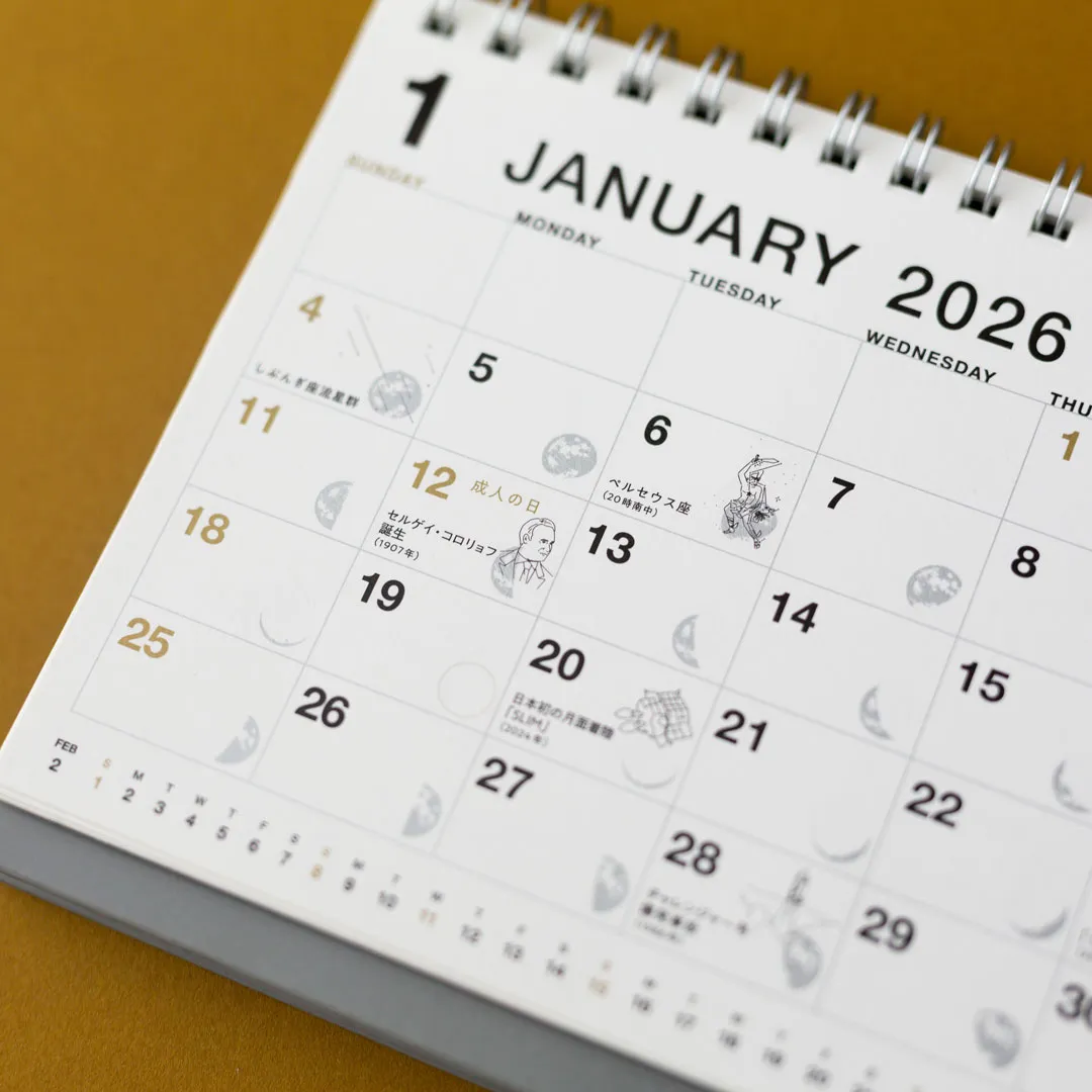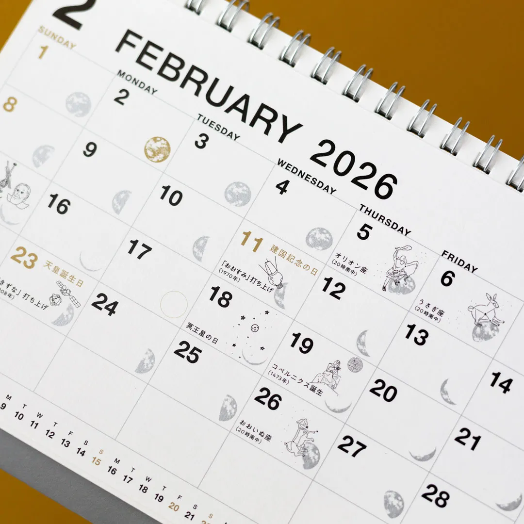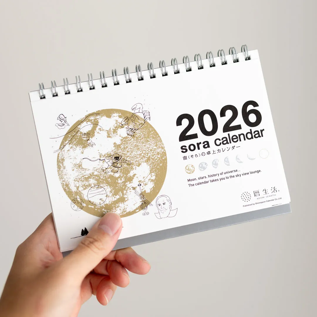 【2026年】 宙(そら)の卓上カレンダー(白) 月の満ち欠け おしゃれ