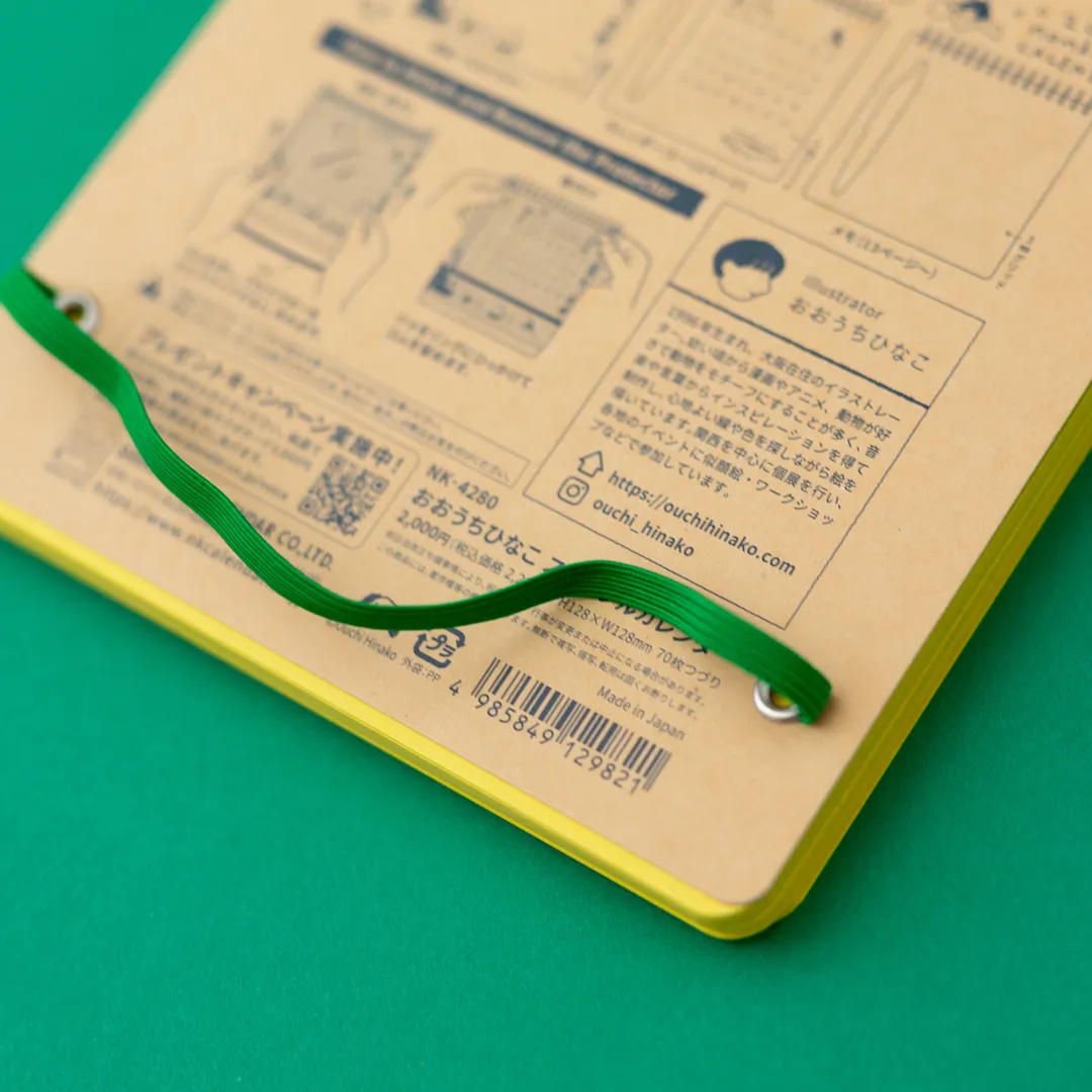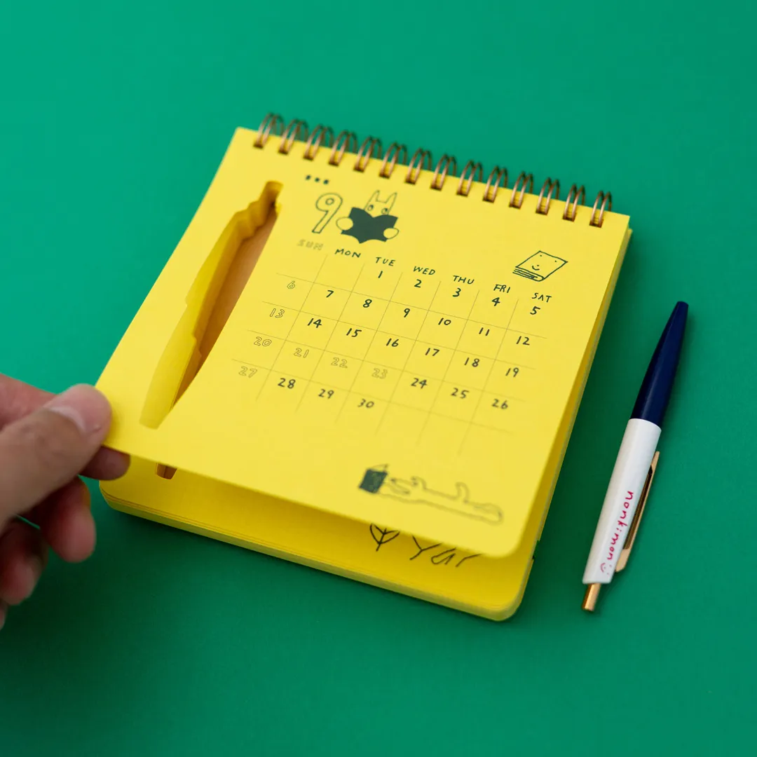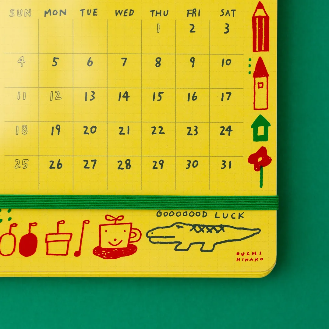 厚めのメモ帳のような見た目で、1~12枚目はカレンダー、13枚目からは方眼メモ(3ミリグリッド)のページがたっぷり。メモのページには、自由に文字やイラストを書き込めます。手帳代わりとして、ぜひご活用ください。