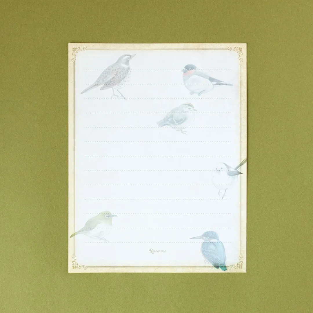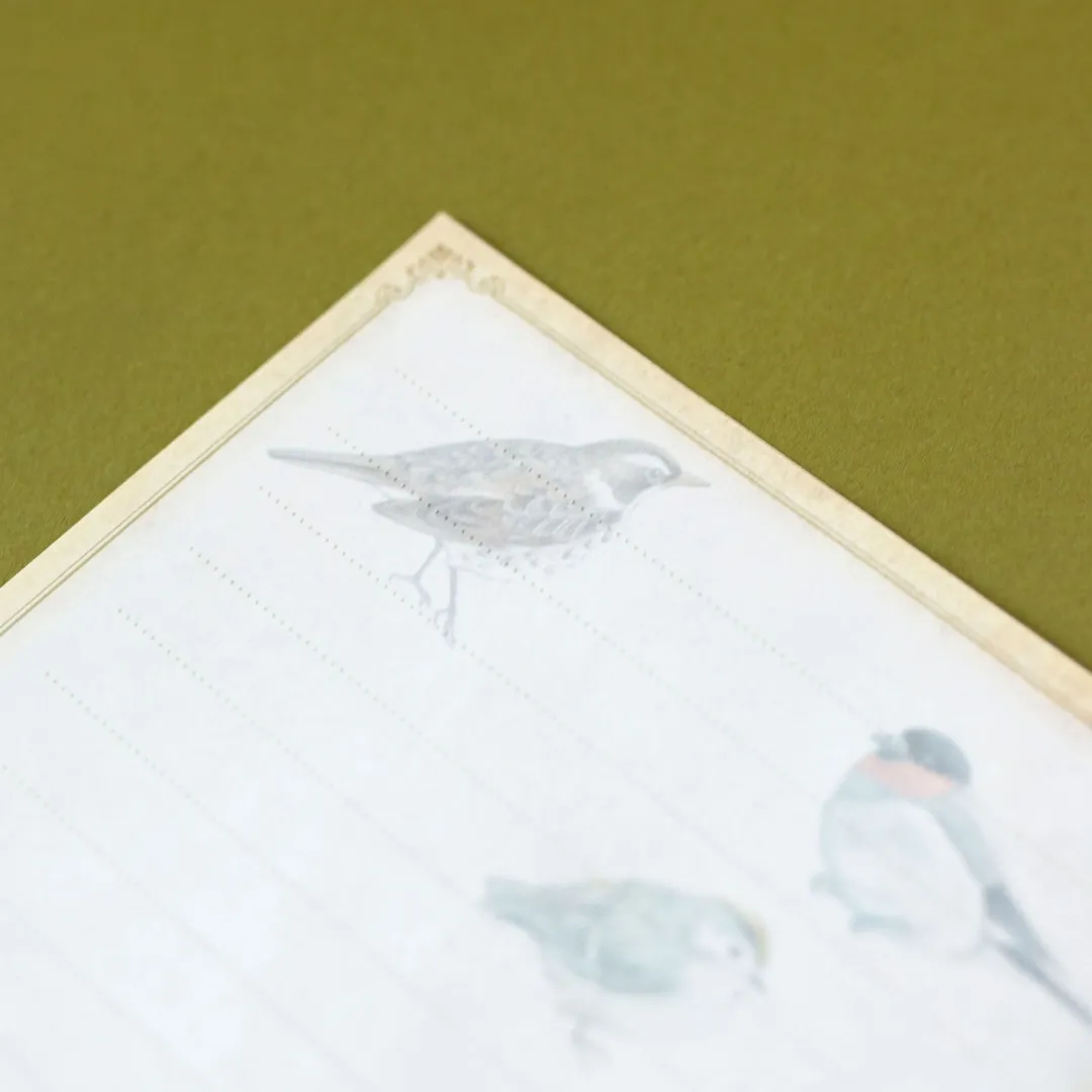 街中や野山で見られる野鳥が描かれたレターセット。どこか懐かしさを感じる、レトロな雰囲気です。