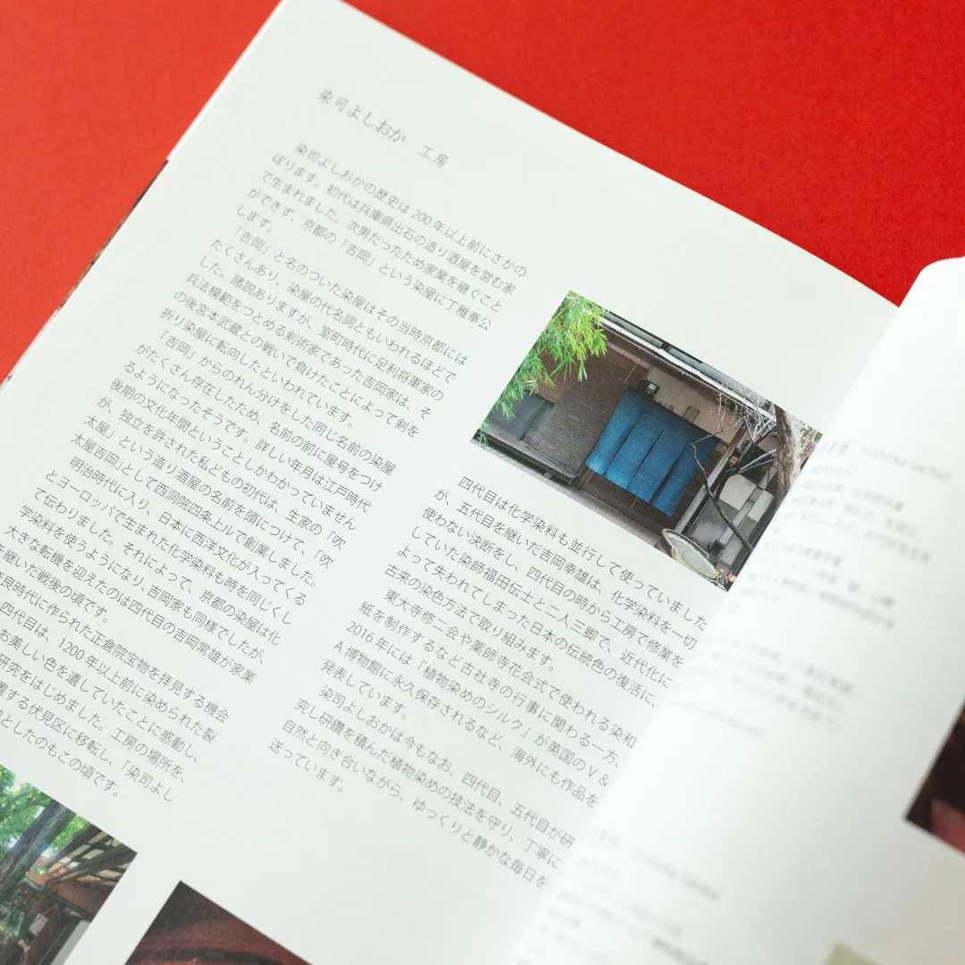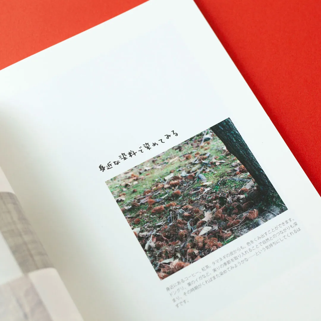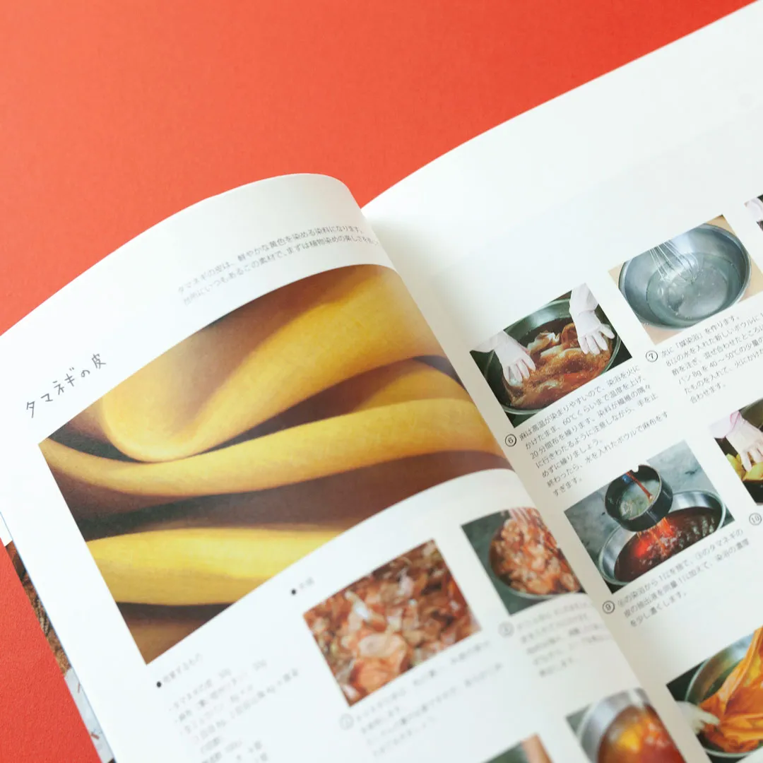 一年間にわたって、染司よしおかの工房から学んだ植物染めの技法、化学染料を使わずに家庭でできる植物染めの工程を写真で詳しく解説しています。