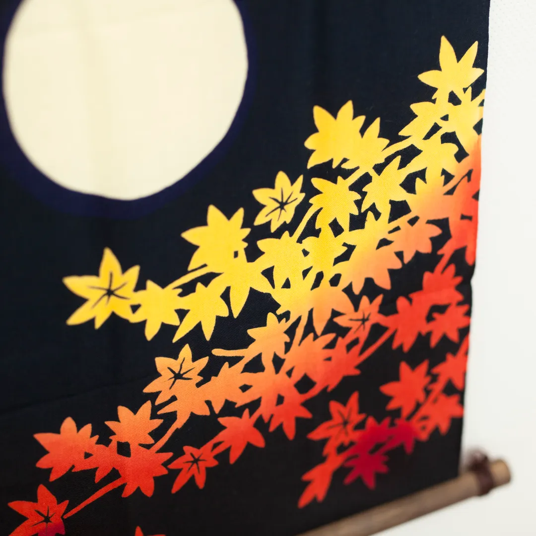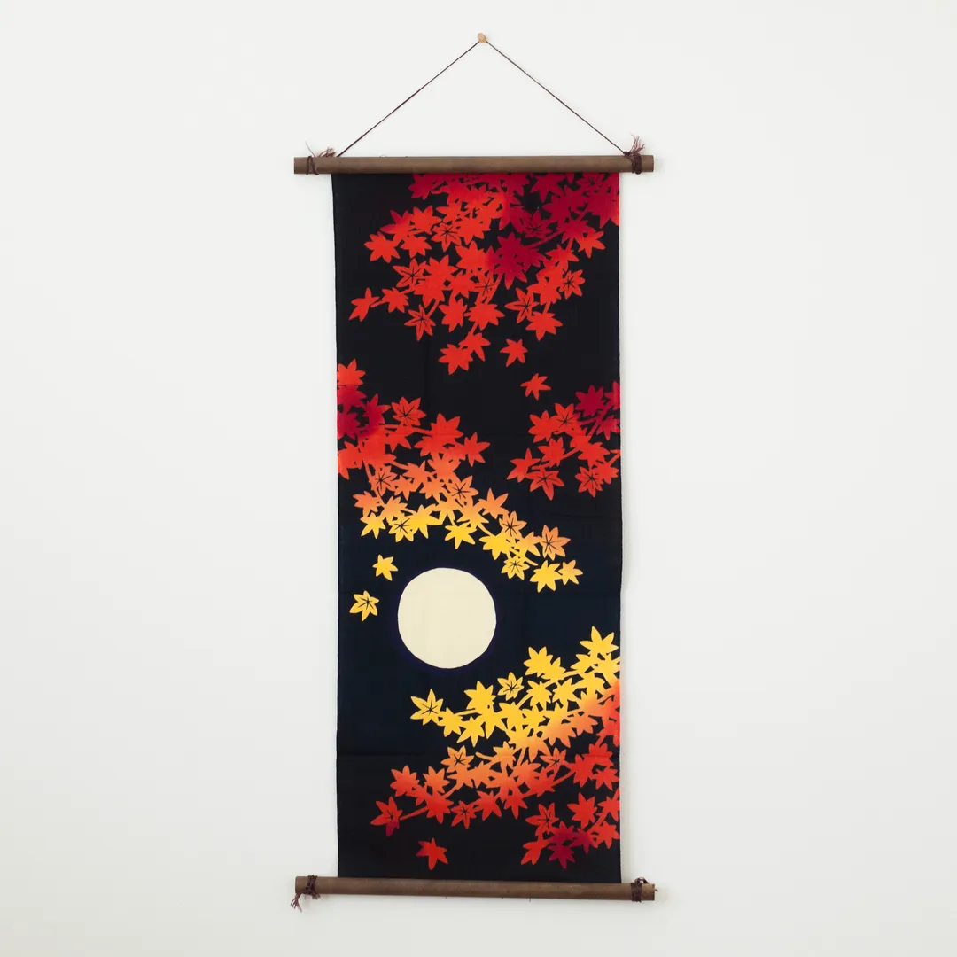 満月に照らされた紅葉の手ぬぐい