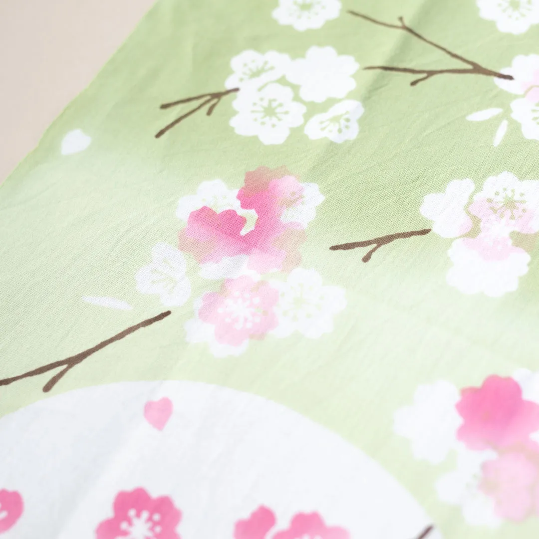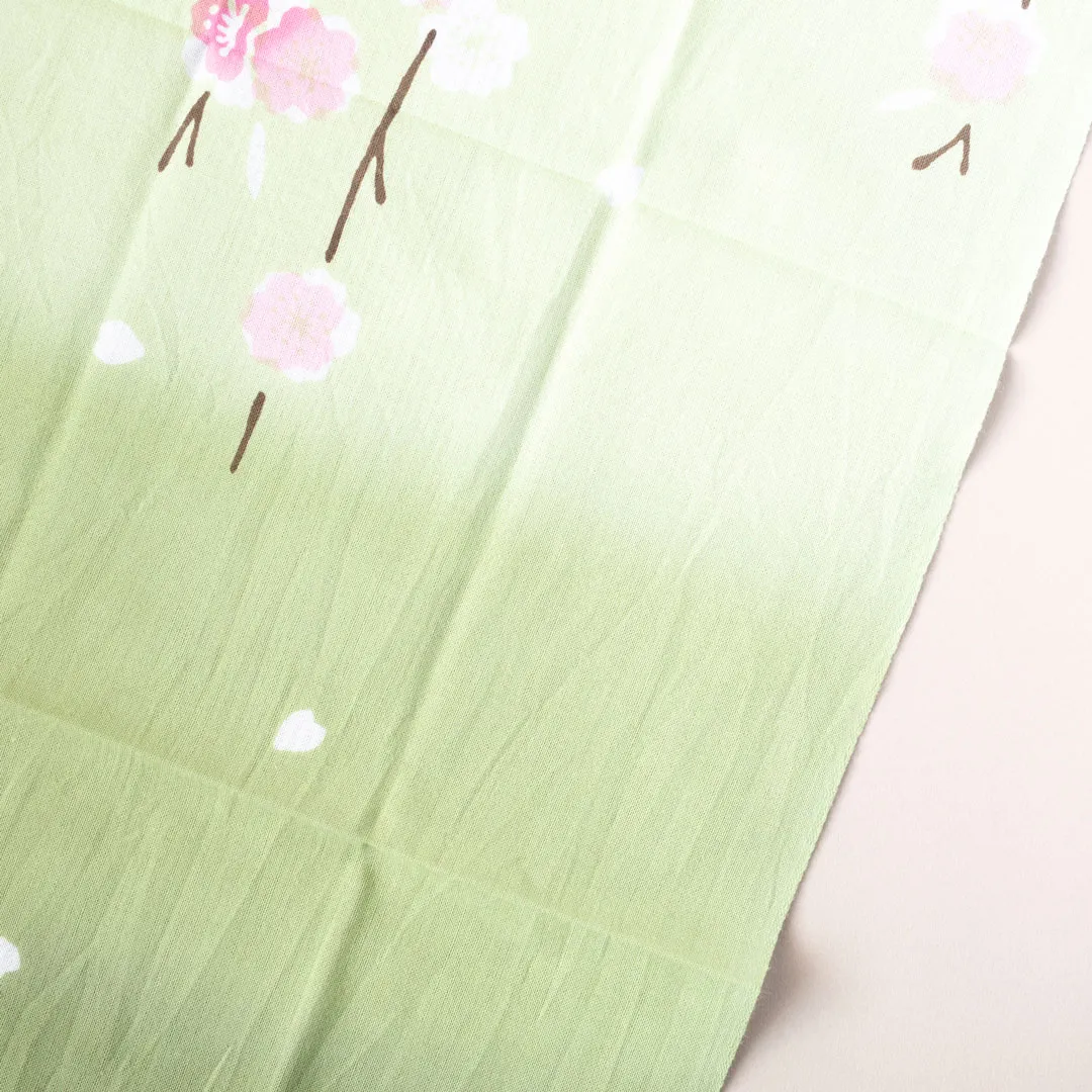 春を感じさせる優しい鶯色のグラデーションが桜色を引き立たせています。