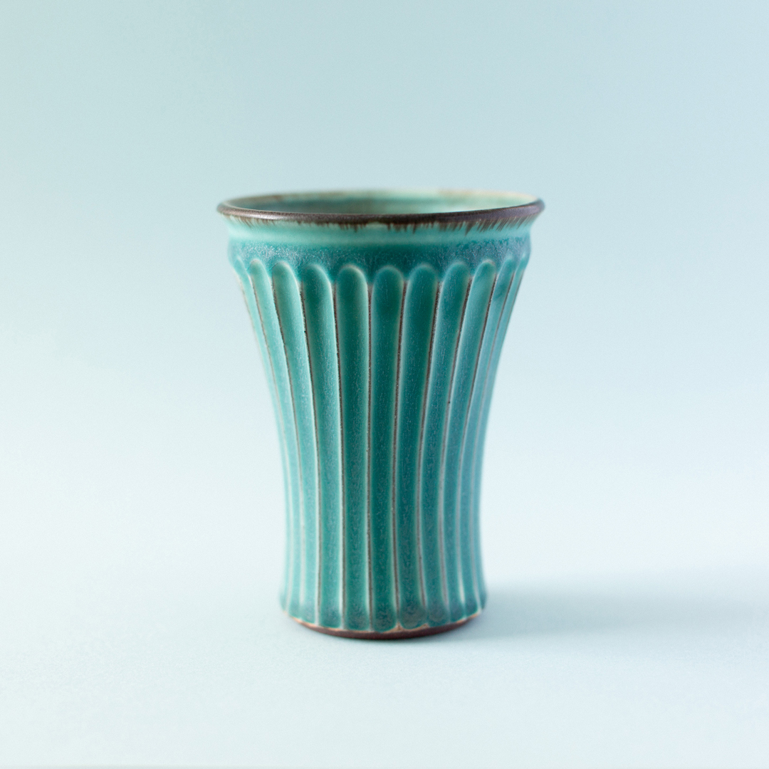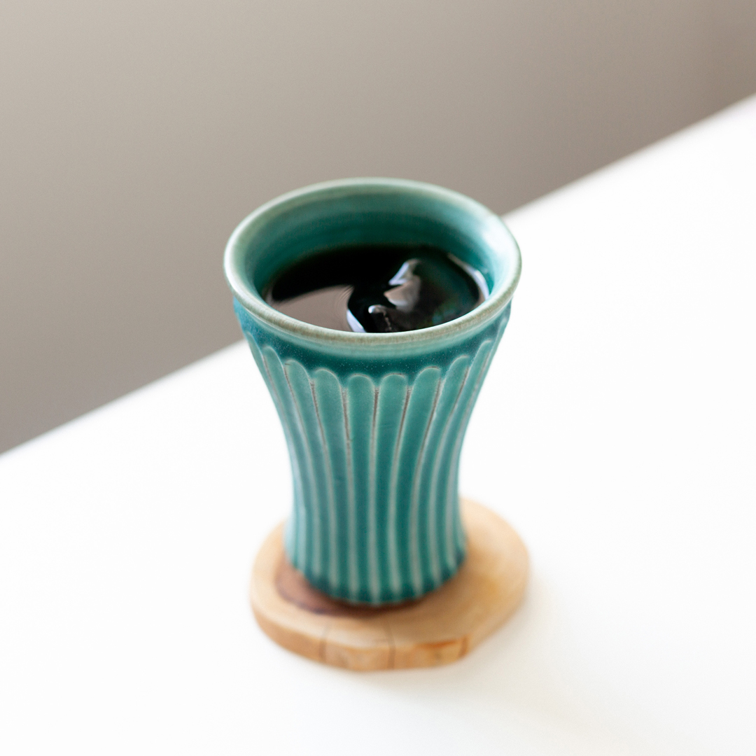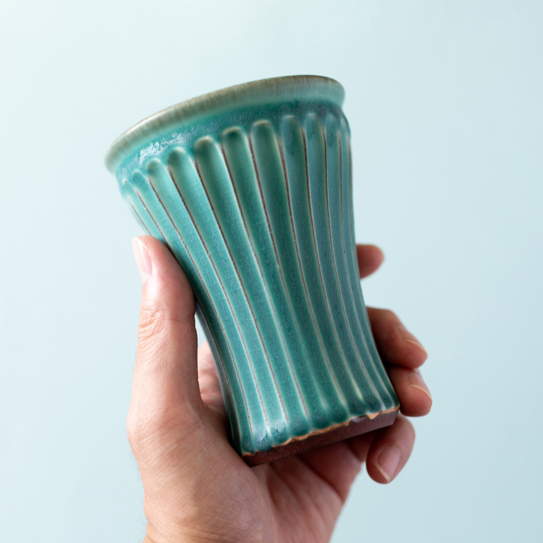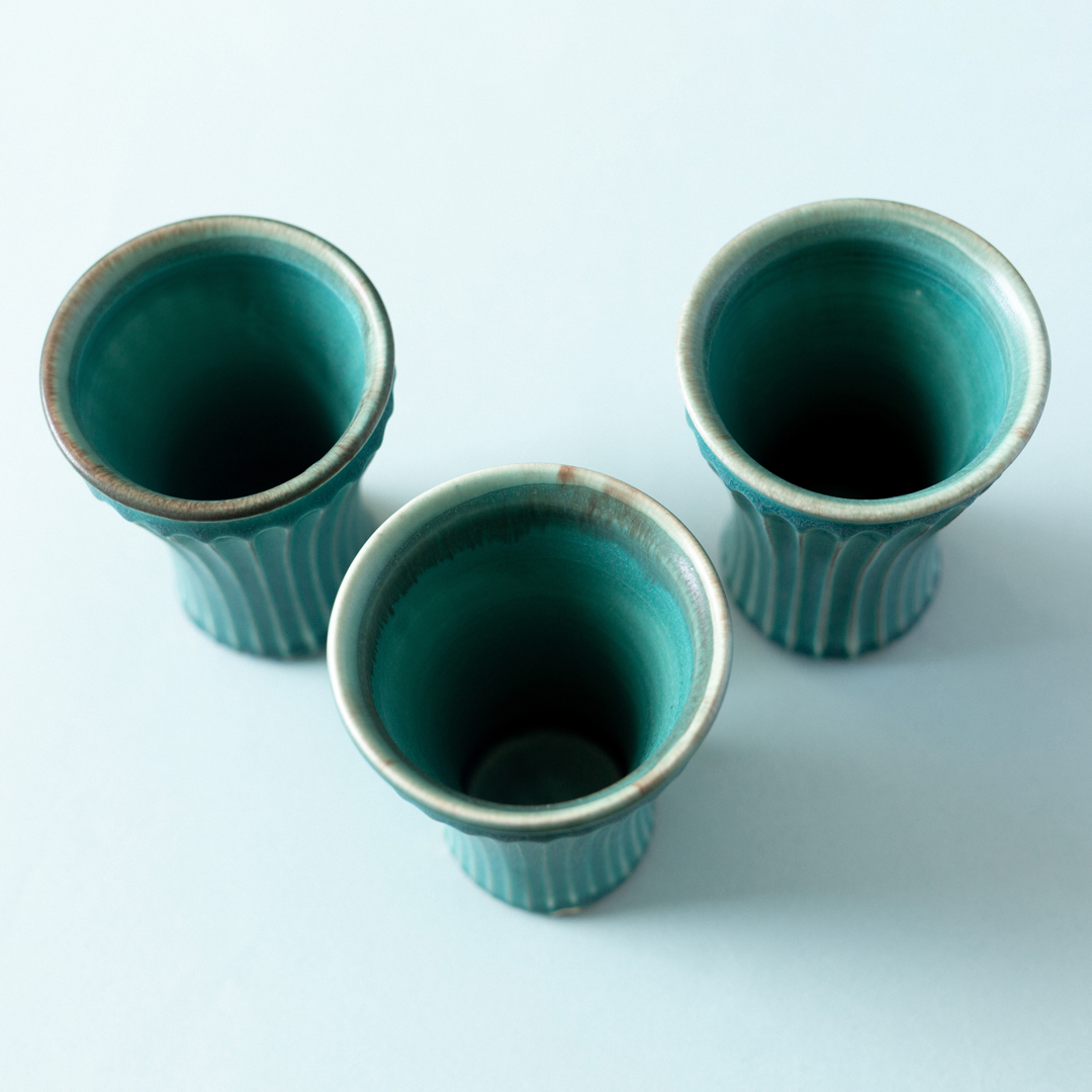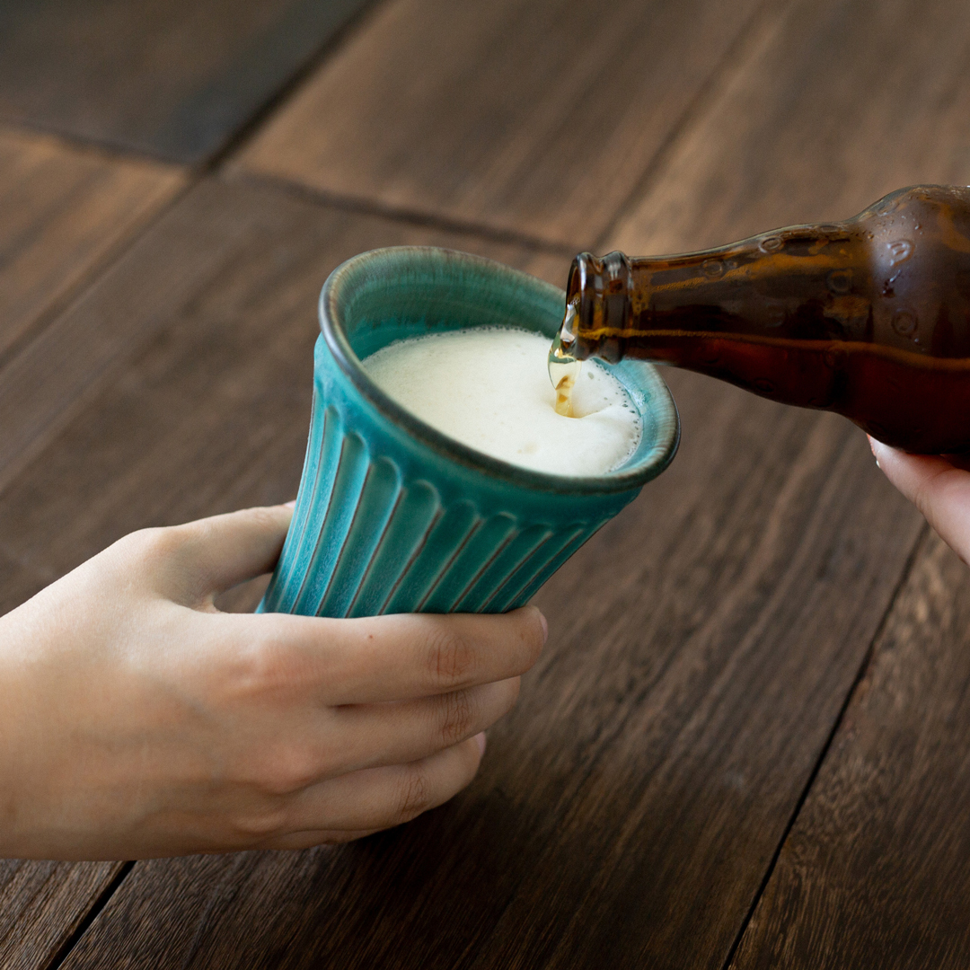冴えた碧色の釉薬が涼しげなビアカップは、うだるような今の時期にぴったり。
