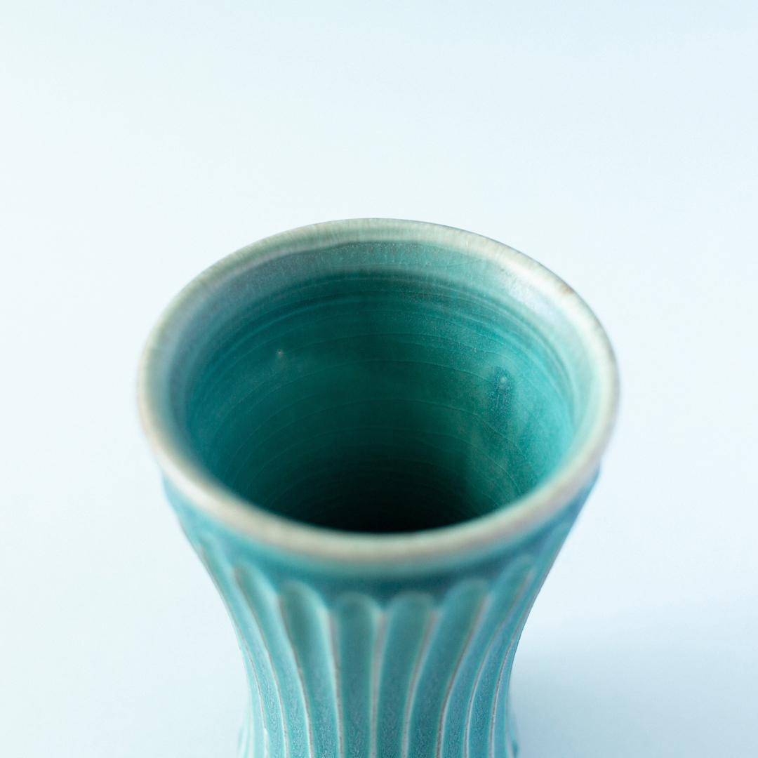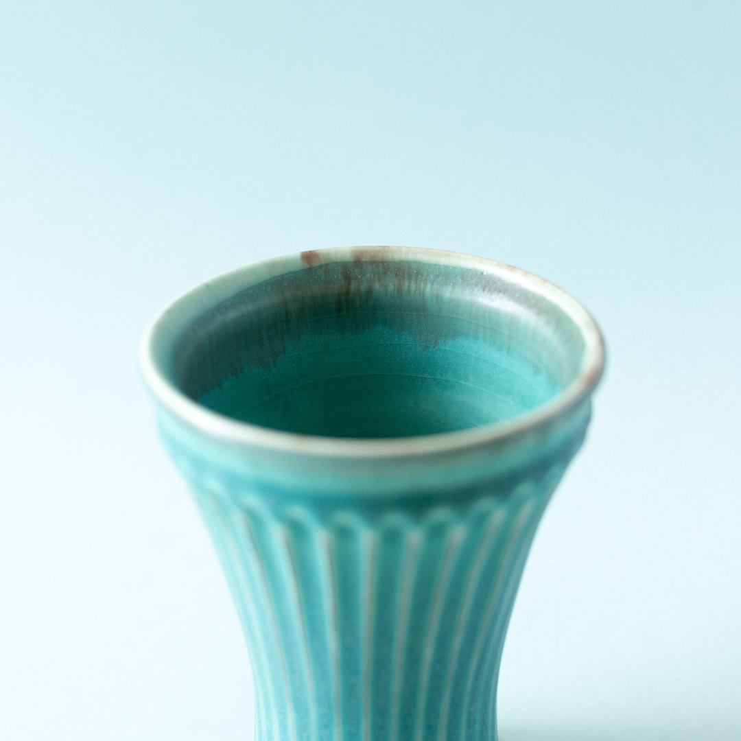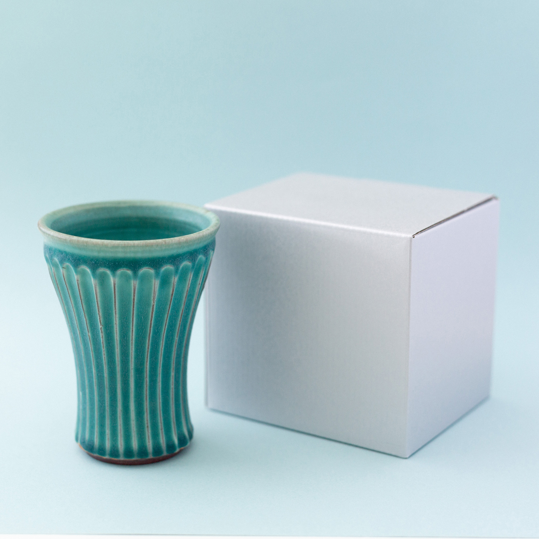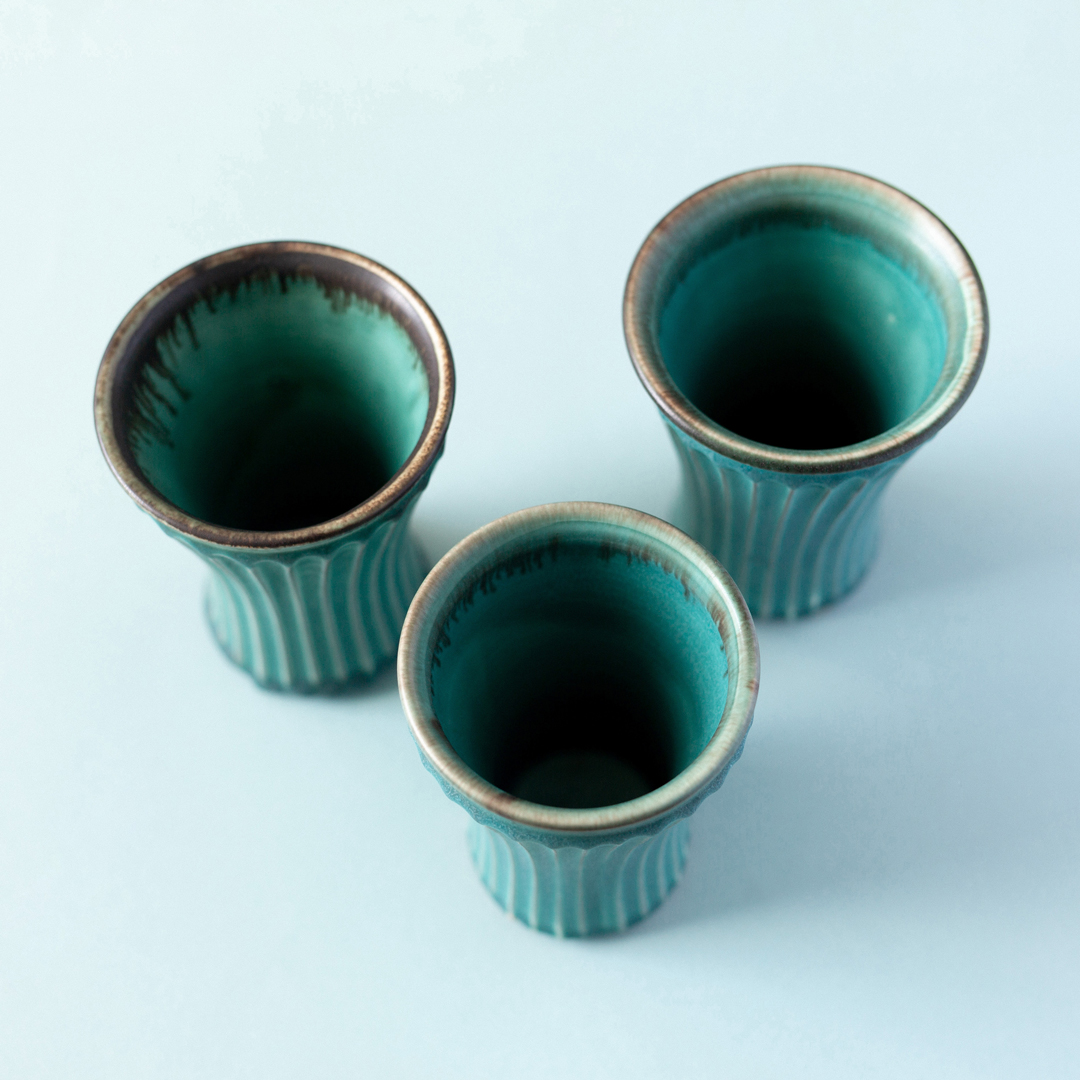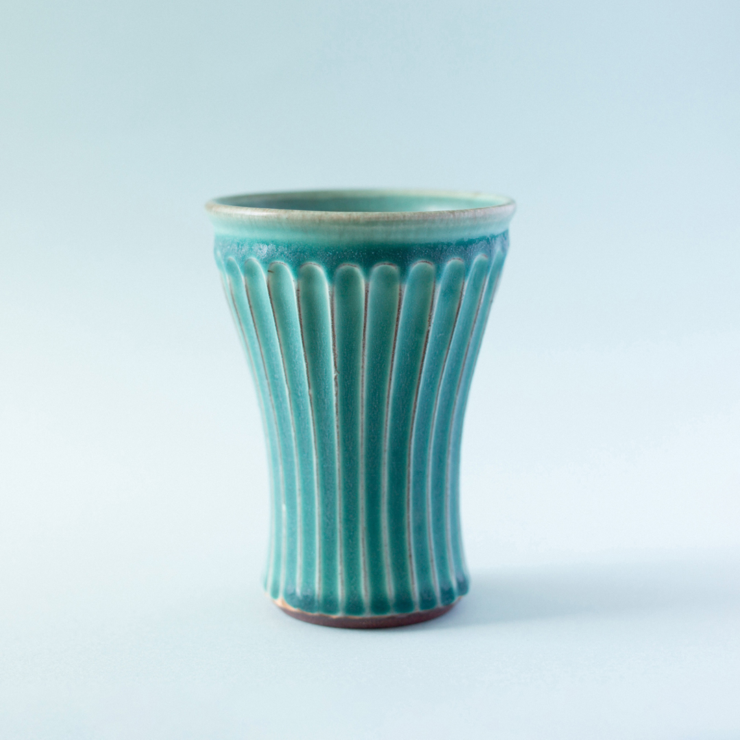 冴えた碧色の釉薬が涼しげなビアカップは、うだるような今の時期にぴったり。