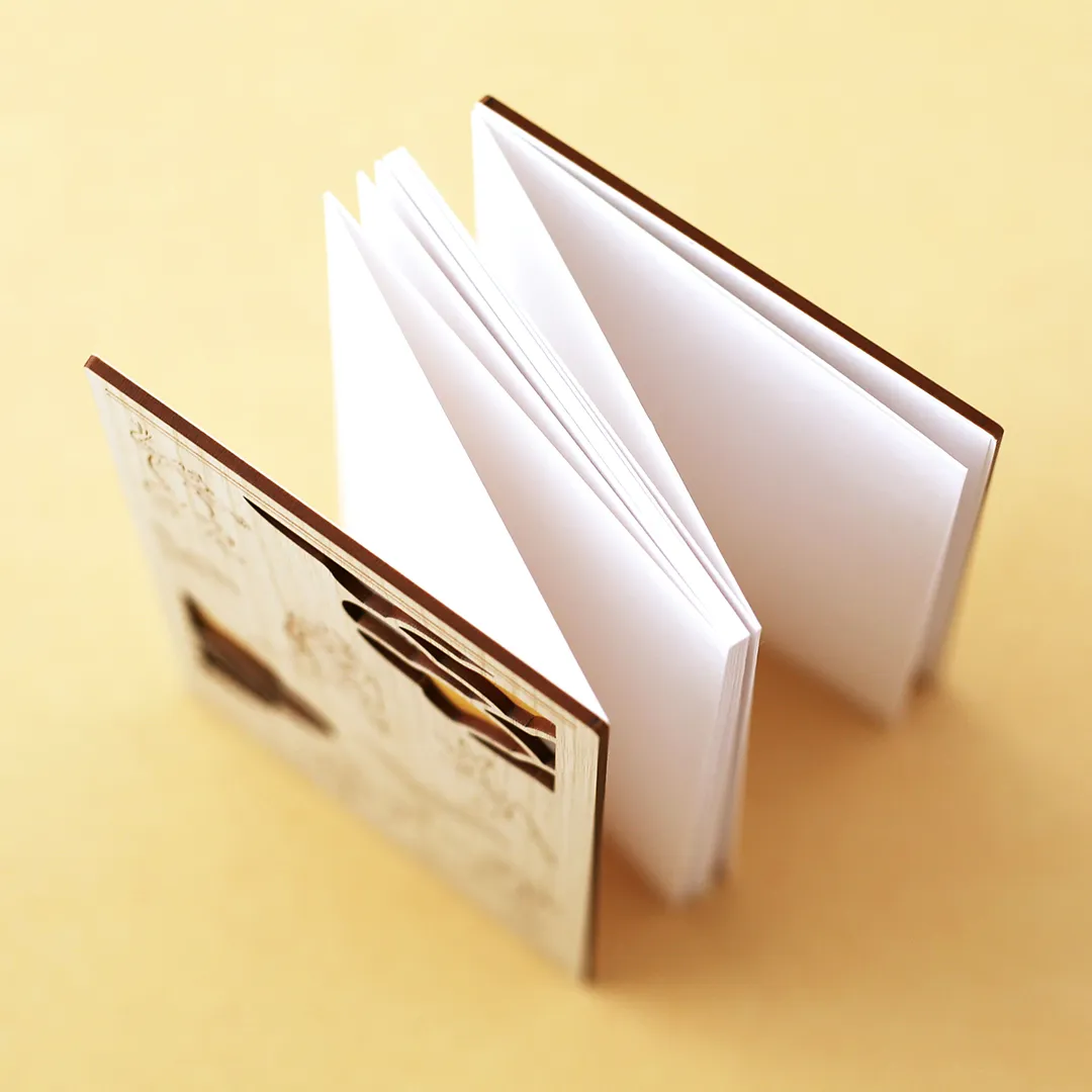 表紙には木材を主原料としたHDF素材を使用しており、優しい手触りが魅力です。