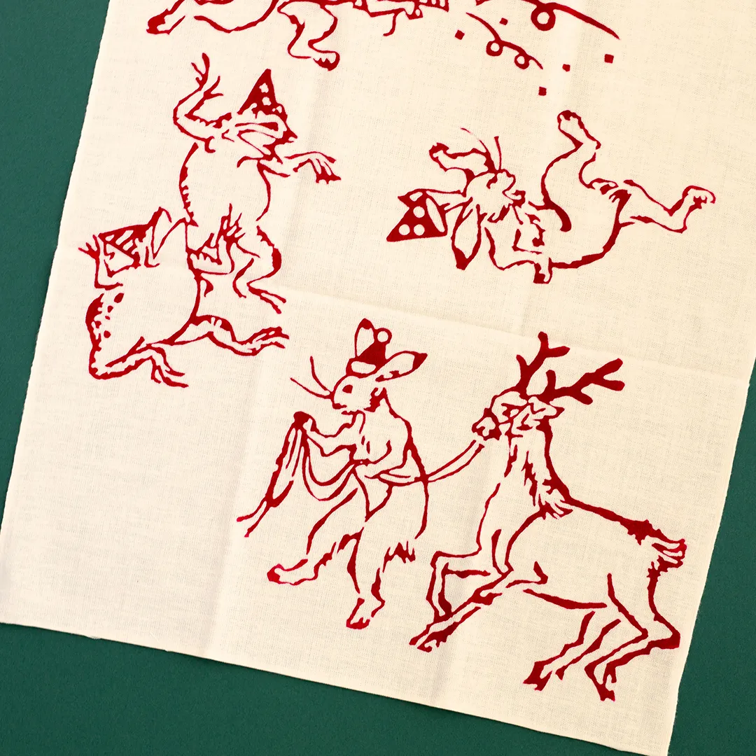 クリスマスの宴をテーマにした鳥獣戯画の手ぬぐい