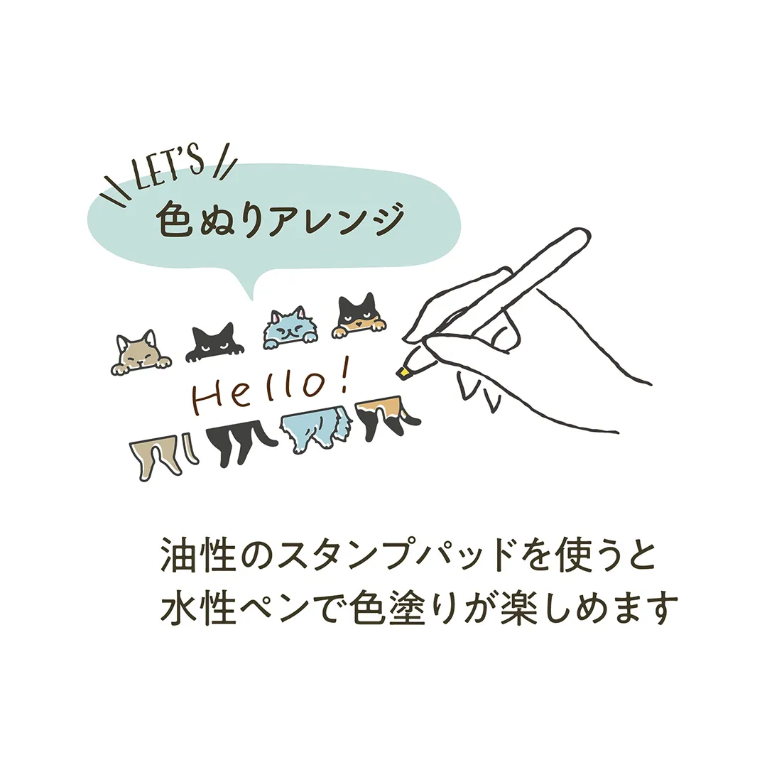 ねこ柄が対になっているデザインもあり、組み合わせて押すと覗いているようなデコレーションが楽しめます。