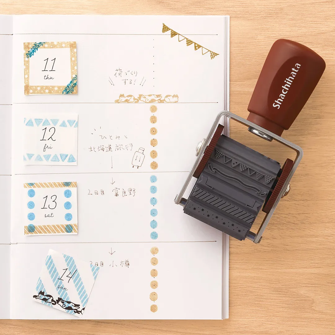 ダイヤルを回転するだけで印面の切り替えができるので、1つで13種類の柄をお楽しみいただけます。