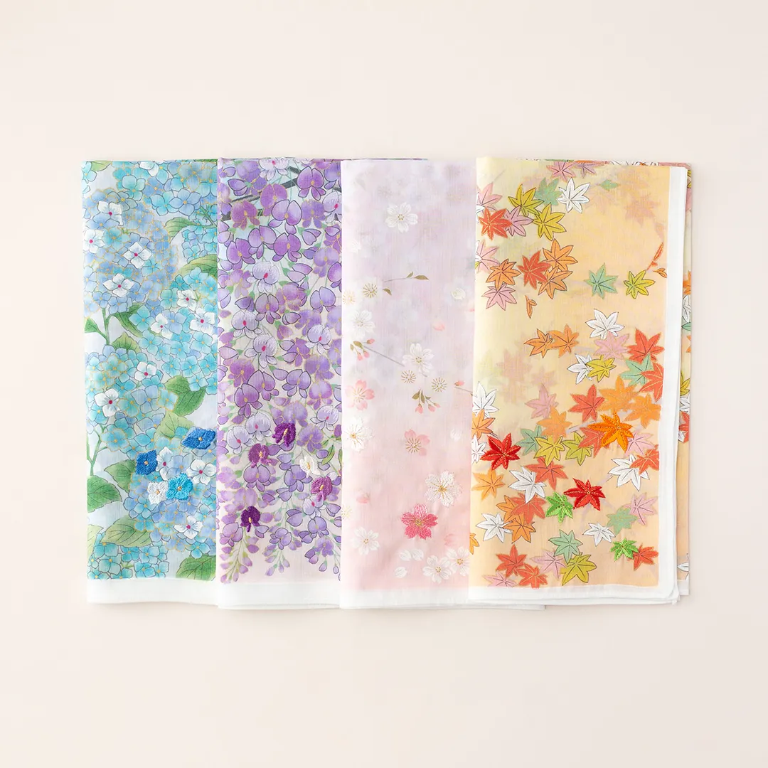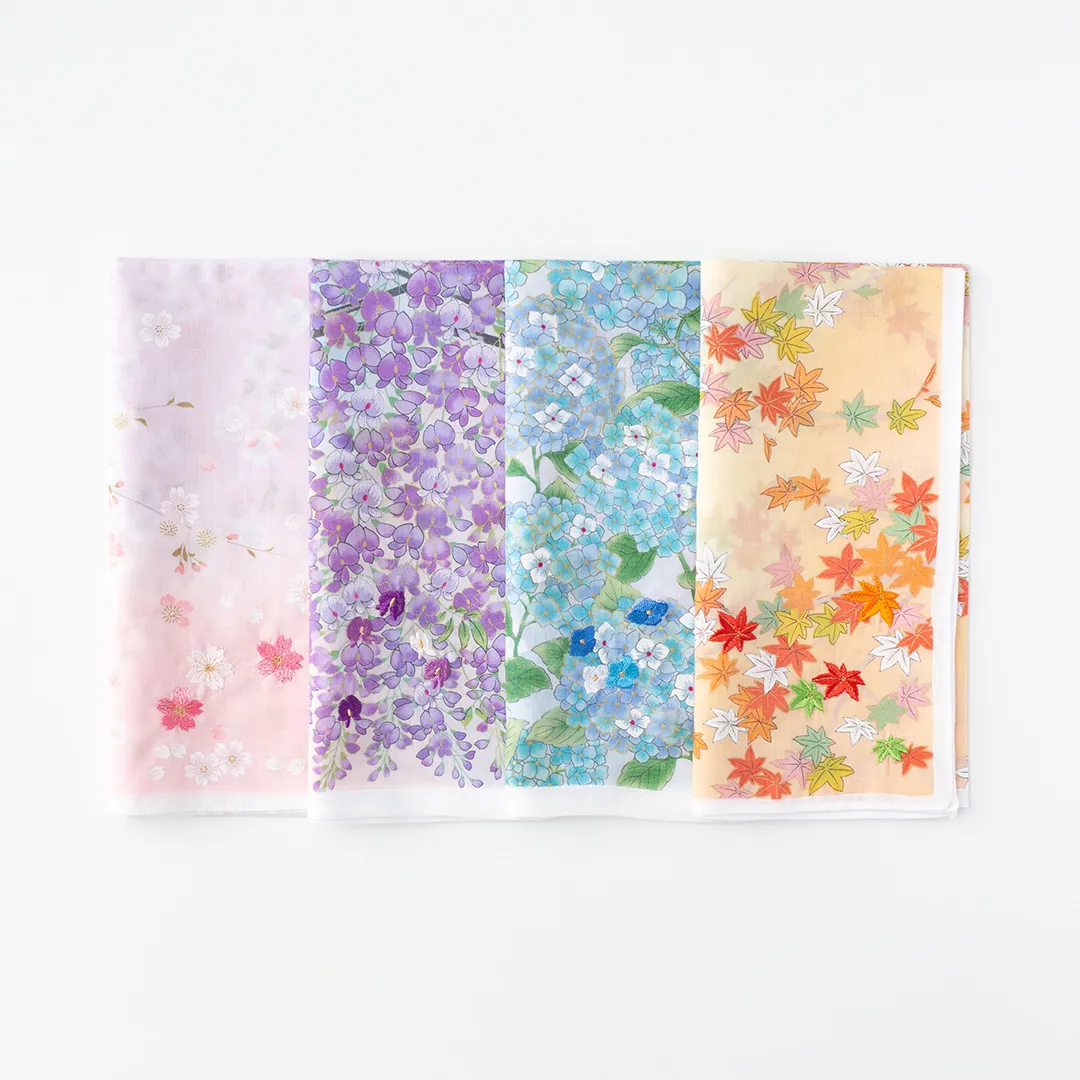 ハンカチをそっと広げるたび、季節ごとの美しい情景がふんわりと目の前に広がります。